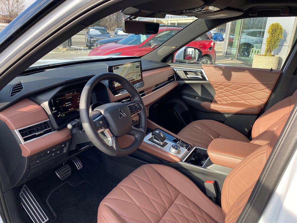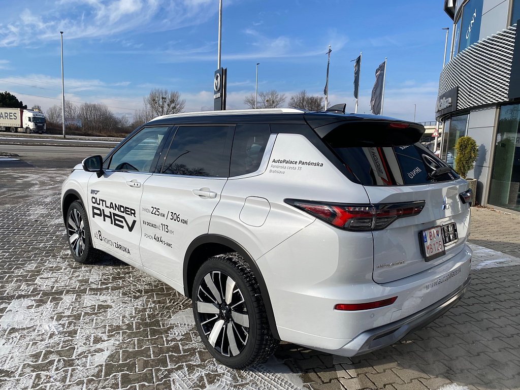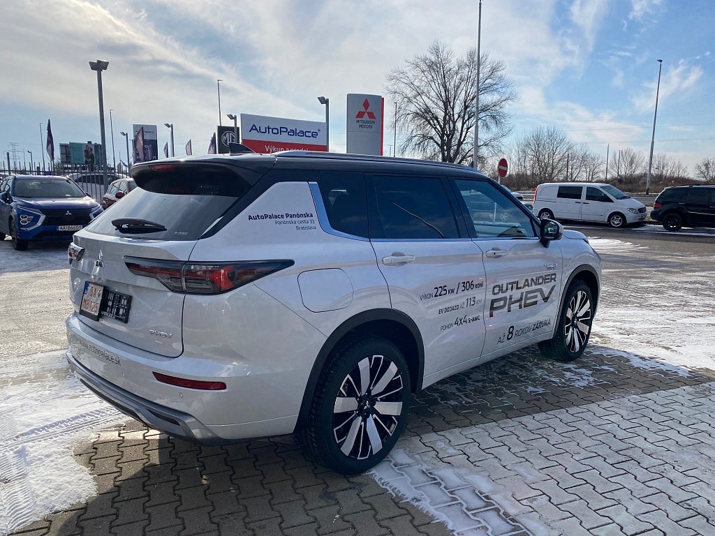 S-AWC pokročilý systém pohonu všetkých kolies s elektronickou voľbou režimov (4WD), Aktívna kontrola stáčania okolo zvislej osi (AYC), Systém sledovania mŕtveho uhla (BSW), Systém sledovania dopravnej situácie za vozidlom pri cúvaní (RCTA), Systém monitorovania a podpory udržiavania jazdného pruhu (LDW), Pokročilý systém pre aktívne udržiavanie v jazdnom pruhu Advanced Lane (LDP), Systém pre núdzové udržanie v jazdnom pruhu (ELKA), Asistent zmeny jazdného pruhu (LCA), Adaptívny tempomat (ACC), Systém rozpoznávania dopravných značiek upravujúcich rýchlosť (TSR) s inteligentným asistentom pre dodržanie povolenej rýchlosti, Antiblokovací brzdový systém (ABS), Elektronický systém rozdelenia brzdného účinku (EBD), Bezpečnostný systém prednostného brzdenia (BOS), Núdzový brzdový asistent (EBA), Systém signalizácie núdzového brzdenia (ESS), Systém aktívneho riadenia stability (ASC), Systém elektronického riadenia trakcie (TCL), Systém stabilizácie prívesu (TSA), Automatické rozsvietenie brzdových svetiel pri regeneratívnom brzdení, Systém pre analýzu pozornosti vodiča na základe štýlu jazdy (DAA), Systém na sledovanie pozornosti vodiča pomocou kamery (DMS), Systém predchádzania a zmierňovania následkov čelného nárazu s detekciou chodcov a cyklistov (FCM), Systém predchádzania a zmierňovania následkov nárazu pri cúvaní (RAEB), Asistent zmierňovania rizika kolízie pri odbočovaní na križovatkách, Tlačidlo pre núdzové privolanie pomoci (E-Call), Karoséria s vysokou odolnosťou proti nárazu s použitím prvkov z vysokopevnostnej ocele (RISE), Systém kontroly tlaku v pneumatikách (TPMS), Súprava na núdzovú opravu pneumatík, Čelné airbagy vodiča a spolujazdca (x2), spínač deaktivácie airbagu spolujazdca, Bočné airbagy vodiča a spolujazdca (x2), Hlavové (okenné) airbagy vpredu a vzadu (x2), Kolenný airbag vodiča, Stredový airbag medzi prednými sedadlami, 3bodový bezpečnostný pás ELR na predných sedadlách s predpínačom a obmedzovačom záťaže (x2), 3bodový bezpečnostný pás ELR na zadných sedadlách (x3) s predpínačom a obmedzovačom záťaže (x2), Výškovo nastaviteľné horné úchyty bezpečnostných pásov na predných sedadlách (x2), Upozornenie na nezapnuté bezpečnostné pásy na všetkých sedadlách, Detská poistka zámkov zadných dverí, Ukotvenie detskej bezpečnostnej sedačky ISOFIX (x2 na zadných sedadlách), Deaktivácia sťahovania zadných okien z miesta vodiča, Upozornenie na prítomnosť cestujúcich na zadných sedadlách, Plne digitálny prístrojový panel s 12,3" TFT displejom, Elektrická parkovacia brzda (EPB) s funkciou Auto Hold, Otočný ovládač jazdných režimov (7 režimov), Asistent rozjazdu do kopca (HSA), Asistent na schádzanie strmých kopcov (HDC), Dažďový senzor, Senzor automatického rozsvietenia svetiel, Automatické diaľkové svetlá (AHB), Elektrický posilňovač riadenia (EPS) s variabilným účinkom, Head Up Display (HUD) s projekciou na čelné sklo, Bezrámčekové digitálne vnútorné spätné zrkadlo s automatickým stmievaním s projekciou zo zadnej kamery, Multi Around Monitor 360° s projekciou na displeji audiosystému (kamera x4), Parkovacie senzory vpredu a vzadu (x8), Automatické uzamknutie dverí za jazdy, Alarm, Elektronický imobilizér, Audiosystém 12,3", navigácia, podpora bezdrôtového Android Auto™ a CarPlay®, Bluetooth®, autorádio AM/FM/DAB (SDA), Ovládanie niektorých funkcií vozidla prostredníctvom hlasových povelov, Podpora online Google služieb, Dátový a nabíjací vstup USB-C na prednom paneli, 3A (x2), Komunikácia s vozidlom a ovládanie niektorých jeho funkcií prostredníctvom mobilnej aplikácie Mitsubishi Motors, Nabíjací vstup USB-C v zadnej časti stredovej konzoly, 3A (x2), Ozvučenie Dynamic Sound Yamaha Ultimate s 12 reproduktormi vrátane subwoofera a digitálneho zosilňovača, entrálne zamykanie dverí s diaľkovým ovládaním a dvoma ovládačmi, Inteligentný systém bezkľúčového ovládania centrálneho zamykania, Štartovanie / vypínanie motora tlačidlom, Ovládanie audiosystému na volante, Výškovo a pozdĺžne nastaviteľný volant, Roletka batožinového priestoru, Elektrická zásuvka 12V (v prednej časti stredovej konzoly) (x1), Programovateľný časovač nabíjania vozidla, Programovateľný časovač predohrevu / predvychladenie interiéru vozidla, Palubný počítač, ukazovateľ vonkajšej teploty, Bezdrôtové nabíjanie mobilného telefónu (15W), Elektrické ovládanie predných a zadných okien s funkciou AUTO a ochranou proti privretiu, Elektricky ovládané piate dvere (ovládanie pohybom chodidla pod zadným nárazníkom, nastaviteľná výška otvárania), Elektrická zásuvka 230 V / 1500 W (1x vzadu, 1x v batožinovom priestore), Panoramatické elektricky ovládané strešné okno so slnečnou clonou, Slnečné clony na zadných oknách (sťahovacie roletky), Tepelné čerpadlo, Výdychy ventilácie pre zadných cestujúcich (pod prednými sedadlami a v zadnej časti stredového tunela), Trojzónová automatická klimatizácia s peľovým filtrom, Tónované sklá s filtrom UV žiarenia, predné sklo bezpečnostné vrstvené, zadné pevnostné temperované, Strešná anténa typu Shark fin, Predný a zadný nárazník vo farbe karosérie, Kľučky dverí vo farbe karosérie, Lemy bočných okien chrómované, Zadný strešný spojler, Plastové lemy blatníkov čierne, Zatmavené zadné bočné sklá a zatmavené zadné sklo, Pozdĺžne strešné lyžiny strieborné, Spodný kryt predného a zadného nárazníka titatovo sivý, Prostredný a zadný bočný dverový stĺpik v lesklo čiernej farbe, Spodná časť predného a zadného nárazníka vo farbe karosérie, Spodné lemy dverí vo farbe karosérie, Dvojfarebné prevedenie karosérie s čiernou alebo striebornou strechou, Metalický lak, Predné LED denné svet