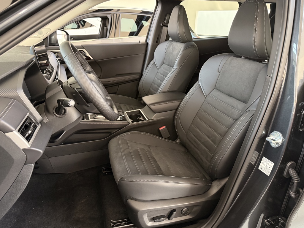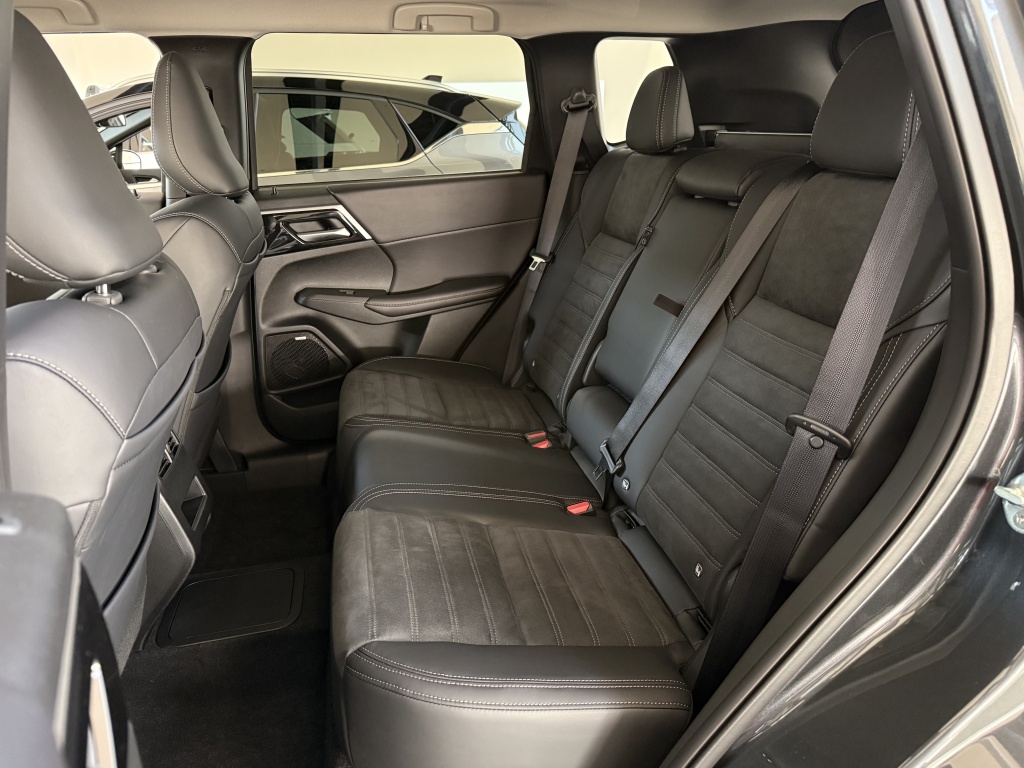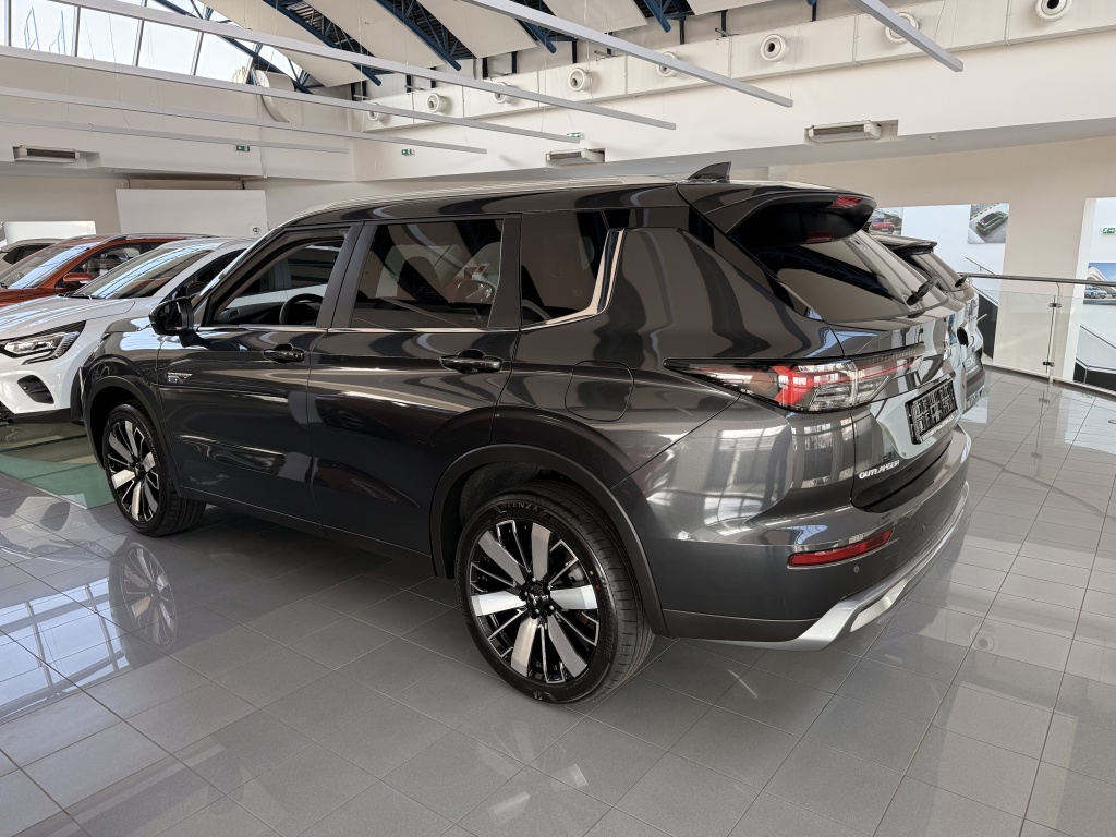 S-AWC pokročilý systém pohonu všetkých kolies s elektronickou voľbou režimov (4WD), Aktívna kontrola stáčania okolo zvislej osi (AYC), Systém sledovania mŕtveho uhla (BSW), Systém sledovania dopravnej situácie za vozidlom pri cúvaní (RCTA), Systém monitorovania a podpory udržiavania jazdného pruhu (LDW), Pokročilý systém pre aktívne udržiavanie v jazdnom pruhu Advanced Lane (LDP), Systém pre núdzové udržanie v jazdnom pruhu (ELKA), Asistent zmeny jazdného pruhu (LCA), Adaptívny tempomat (ACC), Systém rozpoznávania dopravných značiek upravujúcich rýchlosť (TSR) s inteligentným asistentom pre dodržanie povolenej rýchlosti, Antiblokovací brzdový systém (ABS), Elektronický systém rozdelenia brzdného účinku (EBD), Bezpečnostný systém prednostného brzdenia (BOS), Núdzový brzdový asistent (EBA), Systém signalizácie núdzového brzdenia (ESS), Systém aktívneho riadenia stability (ASC), Systém elektronického riadenia trakcie (TCL), Systém stabilizácie prívesu (TSA), Automatické rozsvätenie brzdových svetiel pri regeneratívnom brzdení, Systém pre analýzu pozornosti vodiča na základe štýlu jazdy (DAA), Systém na sledovanie pozornosti vodiča pomocou kamery (DMS), Systém predchádzania a zmierňovania následkov čelného nárazu s detekciou chodcov a cyklistov (FCM), Systém predchádzania a zmierňovania následkov nárazu pri cúvaní (RAEB), Asistent zmierňovania rizika kolízie pri odbočovaní na križovatkách, Tlačidlo pre núdzové privolanie pomoci (E-Call), Karoséria s vysokou odolnosťou proti nárazu s použitím prvkov z vysokopevnostnej ocele (RISE), Systém kontroly tlaku v pneumatikách (TPMS), Súprava na núdzovú opravu pneumatík, Čelné airbagy vodiča a spolujazdca (x2), spínač deaktivácie airbagu spolujazdca, Bočné airbagy vodiča a spolujazdca (x2), Hlavové (okenné) airbagy vpredu a vzadu (x2), Kolenný airbag vodiča, Stredový airbag medzi prednými sedadlami, 3bodový bezpečnostný pás ELR na predných sedadlách s predpínačom a obmedzovačom záťaže (x2), 3bodový bezpečnostný pás ELR na zadných sedadlách (x3) s predpínačom a obmedzovačom záťaže (x2), Výškovo nastaviteľné horné úchyty bezpečnostných pásov na predných sedadlách (x2), Upozornenie na nezapnuté bezpečnostné pásy na všetkých sedadlách, Detská poistka zámkov zadných dverí, Ukotvenie detskej bezpečnostnej sedačky ISOFIX (x2 na zadných sedadlách), Deaktivácia sťahovania zadných okien z miesta vodiča, Upozornenie na prítomnosť cestujúcich na zadných sedadlách, Plne digitálny prístrojový panel s 12,3" TFT displejom, Elektrická parkovacia brzda (EPB) s funkciou Auto Hold, Otočný ovládač jazdných režimov (7 režimov), Asistent rozjazdu do kopca (HSA), Asistent na schádzanie strmých kopcov (HDC), Dažďový senzor, Bezrámčekové vnútorné spätné zrkadlo s automatickým stmievaním, Senzor automatického rozsvietenia svetiel, Automatické diaľkové svetlá (AHB), Elektrický posilňovač riadenia (EPS) s variabilným účinkom, Head Up Display (HUD) s projekciou na čelné sklo, Multi Around Monitor 360° s projekciou na displeji audiosystému (kamera x4), Parkovacie senzory vpredu a vzadu (x8), Automatické uzamknutie dverí za jazdy, Alarm, Elektronický imobilizér, Audiosystém 12,3", navigácia, podpora bezdrôtového Android Auto™ a CarPlay®, Bluetooth®, autorádio AM/FM/DAB (SDA), Ovládanie niektorých funkcií vozidla prostredníctvom hlasových povelov, Podpora online Google služieb, Ozvučenie Dynamic Sound Yamaha Premium s 8 reproduktormi, Dátový a nabíjací vstup USB-C na prednom paneli, 3A (x2), Komunikácia s vozidlom a ovládanie niektorých jeho funkcií prostredníctvom mobilnej aplikácie Mitsubishi Motors, Nabíjací vstup USB-C v zadnej časti stredovej konzoly, 3A (x2), Centrálne zamykanie dverí s diaľkovým ovládaním a dvoma ovládačmi, Inteligentný systém bezkľúčového ovládania centrálneho zamykania, Štartovanie / vypínanie motora tlačidlom, Ovládanie audiosystému na volante, Výškovo a pozdĺžne nastaviteľný volant, Roletka batožinového priestoru, Elektrická zásuvka 12V (v prednej časti stredovej konzoly) (x1), Programovateľný časovač nabíjania vozidla, Programovateľný časovač predohrevu / predvychladenie interiéru vozidla, Palubný počítač, ukazovateľ vonkajšej teploty, Bezdrôtové nabíjanie mobilného telefónu (15W), Elektrické ovládanie predných a zadných okien s funkciou AUTO a ochranou proti privretiu, Elektricky ovládané piate dvere (ovládanie pohybom chodidla pod zadným nárazníkom, nastaviteľná výška otvárania), Elektrická zásuvka 230 V / 1500 W (1x vzadu, 1x v batožinovom priestore), Dvojzónová automatická klimatizácia s peľovým filtrom, Tepelné čerpadlo, Výdychy ventilácie pre zadných cestujúcich (pod prednými sedadlami a v zadnej časti stredového tunela), Tónované sklá s filtrom UV žiarenia, predné sklo bezpečnostné vrstvené, zadné pevnostné temperované, Strešná anténa typu Shark fin, Predný a zadný nárazník vo farbe karosérie, Kľučky dverí vo farbe karosérie, Prostredný a zadný bočný dverový stĺpik v čiernej farbe, Spodná časť predného a zadného nárazníka čierna, Spodné lemy dverí čierne, Lemy bočných okien chrómované, Zadný strešný spojler, Plastové lemy blatníkov čierne, Zatmavené zadné bočné sklá a zatmavené zadné sklo, Pozdĺžne strešné lyžiny strieborné, Spodný kryt predného a zadného nárazníka titanovo sivý, Predné LED denné svetlá, Zadné kombinované LED svetlá, Tretie zadné brzdové LED svetlo, Zadné LED hmlové svetlo, Komfortné funkcie svetiel "Coming home" a "Welcome light", Ostrekovače predných svetlometov, Predné LED hmlové svetlá, Predné adaptívne LED svetlomety s automatickým nastavením sklonu (16 LED), Predné sekvenčné LED smerové svetlá