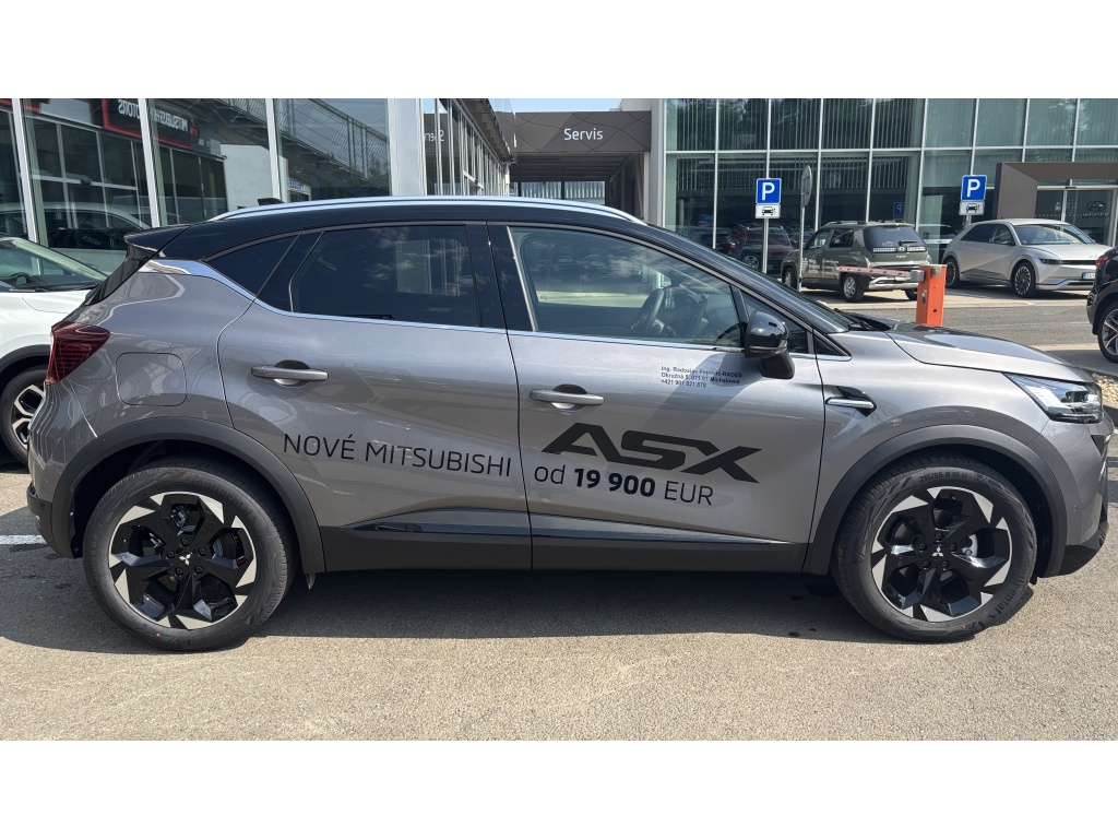 6 repreduktorov, Nabíjací vstup USB-C v zadnej časti stredovej konzoly (x2), Ovládanie audiosystému pod volantom, Plne digitálny prístrojový panel so 7" TFT displejom, Automatické aktualizácie audiosystému, Komunikácia s vozidlom a ovládanie niektorých jeho funkcií prostredníctvom mobilnej aplikácie My Mitsubishi, Bezdrôtové nabíjanie mobilného telefónu, Tlačidlo pre núdzové privolanie pomoci (E-Call), Dátový a nabíjací vstup USB-C na prednom paneli (x2), Audiosystém 10,4", podpora bezdrôtového Android Auto™ a CarPlay®, Bluetooth®, autorádio AM/FM/DAB (SDA), Aktívny systém pre núdzové udržanie v jazdnom pruhu (ELKA), Asistent rozjazdu do kopca (HSA), Výškovo nastaviteľné horné úchyty bezpečnostných pásov predných sedadiel (x2), Systém sledovania dopravnej situácie za vozidlom pri cúvaní (RCTA), Asistent pre bezpečné opustenie vozidla, 3-bodové bezpečnostné pásy ELR zadných sedadiel (x3) s predpínačom a obmedzovačom záťaže (x2), Núdzový brzdový asistent (EBA), Systém sledovania mŕtveho uhla (BSW), Systém rozpoznávania dopravných značiek upravujúcich rýchlosť (TSR) s inteligentným asistentom pre dodržanie povolenej rýchlosti, Aktívny systém udržiania v jazdnom pruhu (LKA), Detská poistka zámkov zadných dverí, Systém signalizácie núdzového brzdenia (ESS), Elektronický imobilizér, Čelné airbagy vodiča a spolujazdca (x2), spínač deaktivácie airbagu spolujazdca, Systém kontroly tlaku v pneumatikách (TPMS), Antiblokovací brzdový systém (ABS), Bočné airbagy vodiča a spolujazdca (x2), hlavové (okenné) airbagy vpredu a vzadu (x2), Systém pre analýzu pozornosti vodiča, Asistenčný systém MI-PILOT s aktívnym asistentom pre udržiavanie uprostred jazdného pruhu (LCA), Elektronický systém rozdelenia brzdného účinku (EBD), Systém predchádzania a zmierňovania následkov čelného nárazu s detekciou chodcov a cyklistov (FCM), Systém monitorovania a podpory udržiavania jazdného pruhu (LDW), Systém aktívneho riadenia stability (ASC), Multikolizná brzda, Lepiaca sada na opravu pneumatík, Systém elektronického riadenia trakcie (TCL), 3-bodové bezpečnostné pásy ELR predných sedadiel s predpínačom a obmedzovačom záťaže (x2), Technológia pohonu mild-hybrid 12V, Zatmavené zadné bočné okná a zatmavené zadné okno, Plastové lemy blatníkov (čierne), Zadný strešný spojler, Lesklo čierna mriežka chladiča s chrómovými akcentmi, Parkovacia kamera vzadu s projekciou na displej audiosystému, Kľučky dverí vo farbe karosérie, Parkovacie senzory vpredu, vzadu a na bočnej strane (x12), Spodný kryt predného nárazníka lesklo čierny, Disky kolies z ľahkých zliatin 18" čiernostrieborné + pneumatiky 215/55 R18, Ochranné spodné lemy dverí čierne, Strešná anténa typu Shark fin, Elektricky ovládané, vyhrievané a sklopné vonkajšie spätné zrkadlá v lesklej čiernej farbe s integrovanými indikátormi zmenu smeru jazdy, Tónované okná, predné sklo bezpečnostné laminované, zadné pevnostné temperované, Spodný kryt zadného nárazníka lesklo čierny, Lemy bočných okien strieborné / chrómované, B-stĺpik dverí v čiernej farbe, Predný a zadný nárazník vo farbe karosérie, Tmavosivé čalúnenie stropu, Ambientné podsvietenie interiéru, Kryt batožinového priestoru, Palubná doska s mäkčeným obložením, Držiaky nápojov vpredu v stredovej konzole (x2), Upozornenie na dodržiavanie bezpečného odstupu, Pozdĺžne strešné lyžiny strieborné, Posuvná stredová lakťová opierka vpredu s úložným priestorom, Vnútorné spätné zrkadlo s automatickým stmievaním, Chromované vnútorné kľučky dverí, Osvetlená odkladacia schránka na strane spolujazdca, Funkcia dvojitého dna v batožinovom priestore, Osvetlenie batožinového priestoru, Lesklo čierne dekory palubnej dosky, Syntetickou kožou obšitý 3ramenný multifunkčný volant, LED osvetlenie prednej časti interiéru, LED osvetlenie zadnej časti interiéru, Vyvýšená predná konzola, Priehradky s držiakmi nápojov vo výplniach predných a zadných dverí, Slnečná clona u vodiča a spolujazdca s LED osvetleným kozmetickým zrkadlom a držiakom lístkov, Čierne predné stĺpiky, Systém automatického vypínania a štartovania motoru (AS&G), Ovládacie páčky radenia pod volantom (Paddle shift), Centrálne zamykanie dverí s diaľkovým ovládaním a dvoma ovládačmi, Inteligentný systém bezkľúčového ovládania centrálneho zamykania s tlačidlom START/STOP, Výškovo a pozdĺžne nastaviteľný volant, Elektronický zámok veka piatych dverí, Komfortná funkcia ostrekovača predného skla, Funkcia obmedzovača rýchlosti s nastavením na volante, Elektrická parkovacia brzda (EPB) s funkciou Auto Hold, Vyhrievaný volant, Možnosť vlastného nastavenia jazdných režimov (My Sense), Palubný počítač, ukazovateľ vonkajšej teploty, Výdychy ventilácie pre zadných cestujúcich (pod prednými sedadlami av zadnej časti stredového tunela), Elektrické ovládanie predných a zadných okien s funkciou AUTO a ochranou proti privretiu, Dažďový senzor, Automatická klimatizácia s peľovým filtrom a filtrom s aktívnym uhlím, Adaptívny tempomat (ACC) s ovládaním na volante a funkciou Stop&Go, Tlačidlo ECO (asistent pre hospodárnu jazdu), Elektrická zásuvka 12V (v prednej časti stredovej konzoly) (x1), Elektrická zásuvka 12V (v zadnej časti stredového tunela) (x1), Výškovo nastaviteľné sedadlo vodiča, Výškovo nastaviteľné opierky hlavy na predných sedadlách (x2), Výškovo nastaviteľné opierky hlavy na zadných sedadlách (x3), Vrecká na zadnej strane operadla vodiča a spolujezdce, Výškovo nastaviteľné sedadlo spolujazdca, Kotviace body pre ISOFIX (x1 na mieste spolujazdca, x2 na zadných bočných sedadlách), Látkové čalúnenie sedadiel čierne / sivé, Vyhrievané predné sedadlá (2 stupne teploty
