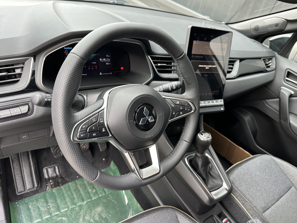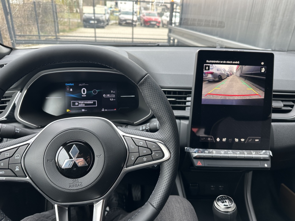 6 repreduktorov, Plne digitálny prístrojový panel so 7" TFT displejom, Bezdrôtové nabíjanie mobilného telefónu, Dátový a nabíjací vstup USB-C na prednom paneli (x2), Ovládanie audiosystému pod volantom, Audiosystém 10,4", podpora bezdrôtového Android Auto™ a CarPlay®, Bluetooth®, autorádio AM/FM/DAB (SDA), Automatické aktualizácie multimediálneho systému, Tlačidlo pre núdzové privolanie pomoci (E-Call), Nabíjací vstup USB-C v zadnej časti stredovej konzoly (x2), Prepojenie s vozidlom a ovládanie vybraných funkcií pomocou mobilnej aplikácie Mitsubishi Motors, 3-bodový bezpečnostný pás na predných sedadlách s predpínačom a obmedzovačom záťaže (x2), Lepiaca sada na opravu pneumatík, Systém pre analýzu pozornosti vodiča, 3-bodový bezpečnostný pás na zadných sedadlách (x3) s predpínačom a obmedzovačom záťaže (x2), Systém sledovania dopravnej situácie za vozidlom pri cúvaní (RCTA), Systém signalizácie núdzového brzdenia (ESS), Systém predchádzania a zmierňovania následkov čelného nárazu s detekciou chodcov a cyklistov (FCM), Systém sledovania mŕtveho uhla (BSW), Systém kontroly tlaku v pneumatikách (TPMS), Antiblokovací brzdový systém (ABS), Detská poistka zámkov zadných dverí, Multikolizná brzda, Výškovo nastaviteľné horné úchyty bezpečnostných pásov predných sedadiel (x2), Elektronický systém rozdelenia brzdného účinku (EBD), Elektronický imobilizér, Systém aktívneho riadenia stability (ASC), Hlavové (okenné) airbagy vpredu (x2), Upozornenie na dodržiavanie bezpečného odstupu, Asistent pre bezpečné opustenie vozidla, Systém elektronického riadenia trakcie (TCL), Možnosť uloženia vlastného nastavenia bezpečnostných asistentov (My Safety Perso), Systém rozpoznávania dopravných značiek upravujúcich rýchlosť (TSR) s inteligentným asistentom pre dodržanie povolenej rýchlosti, Čelné airbagy vodiča a spolujazdca (x2), spínač deaktivácie airbagu spolujazdca, Asistent rozjazdu do kopca (HSA), Systém monitorovania a podpory udržiavania jazdného pruhu (LDW), Núdzový brzdový asistent (EBA), Spodný kryt predného nárazníka lesklo čierny, Predný a zadný nárazník vo farbe karosérie, Disky kolies z ľahkých zliatin 19" čiernostrieborné + pneumatiky 225/45 R19, B-stĺpik dverí v čiernej farbe, Tónované okná, predné sklo bezpečnostné laminované, zadné pevnostné temperované, Parkovacia kamera vzadu s projekciou na displej audiosystému, Strešná anténa typu Shark fin v lesklej čiernej farbe, Lesklo čierna mriežka chladiča s chrómovými akcentmi, Zatmavené zadné bočné okná a zatmavené zadné okno, Elektricky ovládané, vyhrievané a sklopné vonkajšie spätné zrkadlá v lesklej čiernej farbe s integrovanými indikátormi zmenu smeru jazdy, Plastové lemy blatníkov (čierne), Spodná časť zadného nárazníka lesklá čierna, Zadný strešný spoiler vo farbe karosérie s brzdovým LED svetlom, Parkovacie senzory vpredu, vzadu a na bočnej strane (x12), Spodný kryt zadného nárazníka strieborný, Ochranné spodné lemy dverí lesklo čierne, Kľučky dverí vo farbe karosérie, Čierne predné stĺpiky, Funkcia dvojitého dna v batožinovom priestore, Priehradky s držiakmi nápojov vo výplniach predných a zadných dverí, Slnečná clona u vodiča a spolujazdca s LED osvetleným kozmetickým zrkadlom a držiakom lístkov, LED osvetlenie prednej časti interiéru, Syntetickou kožou obšitý 3ramenný multifunkčný volant, Osvetlenie batožinového priestoru, Chromované vnútorné kľučky dverí, LED osvetlenie zadnej časti interiéru, Držiaky nápojov vpredu v stredovej konzole (x2), Tmavosivé čalúnenie stropu, Kryt batožinového priestoru, Ambientné podsvietenie interiéru, Palubná doska s mäkčeným obložením, Lesklo čierne dekory palubnej dosky, Osvetlená odkladacia schránka na strane spolujazdca, Posuvná stredová lakťová opierka vpredu s úložným priestorom, Bezrámčekové vnútorné spätné zrkadlo s automatickým stmievaním, Elektronický zámok veka piatych dverí, Elektrické ovládanie predných a zadných okien s funkciou AUTO a ochranou proti privretiu, Výškovo a pozdĺžne nastaviteľný volant, Komfortná funkcia ostrekovača predného skla, Elektrický posilňovač riadenia (EPS) s variabilnym účinkom, Možnosť vlastného nastavenia jazdných režimov (My Sense), Centrálne zamykanie dverí s diaľkovým ovládaním a dvoma ovládačmi, Automatická klimatizácia s peľovým filtrom a chrómovaným ovládačom, Palubný počítač, ukazovateľ vonkajšej teploty, Elektrická zásuvka 12V (v prednej časti stredovej konzoly) (x1), Elektricky ovládané piate dvere (ovládanie pohybom nohy pod zadným nárazníkom), Inteligentný systém bezkľúčového ovládania centrálneho zamykania s tlačidlom START/STOP, Vyhrievaný volant, Elektrická zásuvka 12V (v zadnej časti stredového tunela) (x1), Dažďový senzor, Vyhrievané čelné sklo, Systém automatického vypínania a štartovania motoru (AS&G), Elektrická parkovacia brzda (EPB) s funkciou Auto Hold, Výdychy ventilácie pre zadných cestujúcich (pod prednými sedadlami av zadnej časti stredového tunela), Výškovo nastaviteľné opierky hlavy na predných sedadlách (x2), Sedadlá v druhom rade delené v pomere 60:40, Posuvná lavica zadného sedadla (160 mm), Výškovo nastaviteľné opierky hlavy na zadných sedadlách (x3), Výškovo nastaviteľné sedadlo spolujazdca, Kotviace body pre ISOFIX (x1 na mieste spolujazdca, x2 na zadných bočných sedadlách), Vrecká na zadnej strane operadla vodiča a spolujezdce, Látkové čalúnenie sedadiel čierne / sivé, Výškovo nastaviteľné sedadlo vodiča, Zadné hmlové svetlo integrované v nárazníku, Automatická diaľkové svetlá (AHB), Predné LED svetlomety s manuálnym nastavením sklonu, Senzor automatického rozsvätenia svetiel, Predné smerové svetl