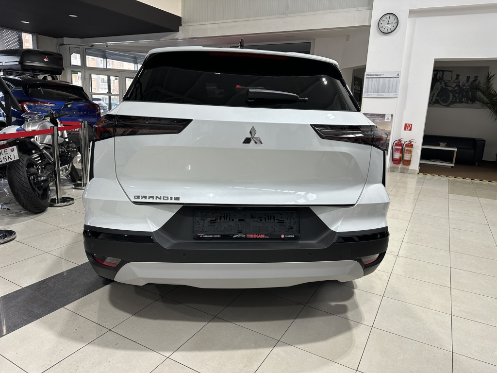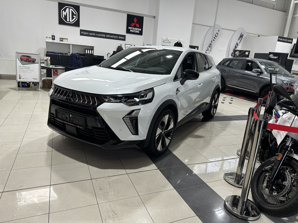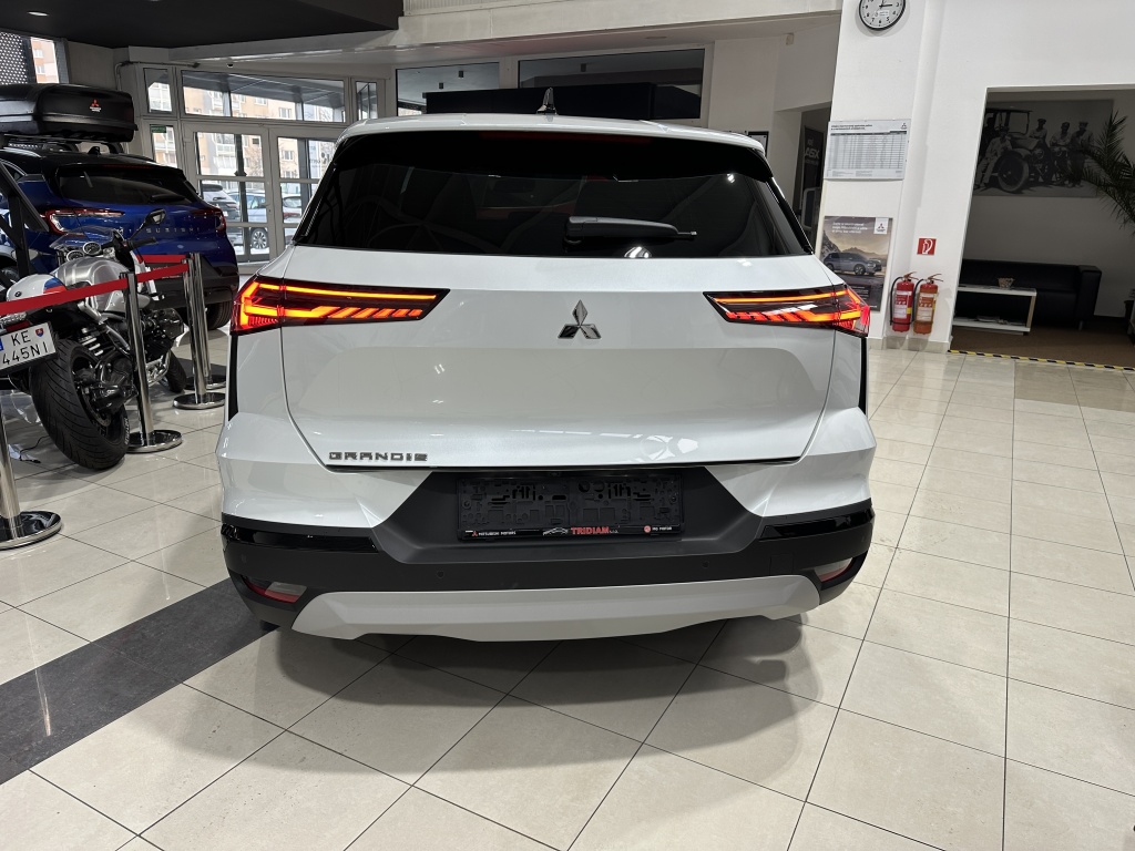 6 repreduktorov, Plne digitálny prístrojový panel so 7" TFT displejom, Bezdrôtové nabíjanie mobilného telefónu, Dátový a nabíjací vstup USB-C na prednom paneli (x2), Ovládanie audiosystému pod volantom, Audiosystém 10,4", podpora bezdrôtového Android Auto™ a CarPlay®, Bluetooth®, autorádio AM/FM/DAB (SDA), Automatické aktualizácie multimediálneho systému, Tlačidlo pre núdzové privolanie pomoci (E-Call), Nabíjací vstup USB-C v zadnej časti stredovej konzoly (x2), Prepojenie s vozidlom a ovládanie vybraných funkcií pomocou mobilnej aplikácie Mitsubishi Motors, 3-bodový bezpečnostný pás na predných sedadlách s predpínačom a obmedzovačom záťaže (x2), Lepiaca sada na opravu pneumatík, Systém pre analýzu pozornosti vodiča, 3-bodový bezpečnostný pás na zadných sedadlách (x3) s predpínačom a obmedzovačom záťaže (x2), Systém sledovania dopravnej situácie za vozidlom pri cúvaní (RCTA), Systém signalizácie núdzového brzdenia (ESS), Systém predchádzania a zmierňovania následkov čelného nárazu s detekciou chodcov a cyklistov (FCM), Systém sledovania mŕtveho uhla (BSW), Systém kontroly tlaku v pneumatikách (TPMS), Antiblokovací brzdový systém (ABS), Detská poistka zámkov zadných dverí, Multikolizná brzda, Výškovo nastaviteľné horné úchyty bezpečnostných pásov predných sedadiel (x2), Elektronický systém rozdelenia brzdného účinku (EBD), Elektronický imobilizér, Systém aktívneho riadenia stability (ASC), Hlavové (okenné) airbagy vpredu (x2), Upozornenie na dodržiavanie bezpečného odstupu, Asistent pre bezpečné opustenie vozidla, Systém elektronického riadenia trakcie (TCL), Možnosť uloženia vlastného nastavenia bezpečnostných asistentov (My Safety Perso), Systém rozpoznávania dopravných značiek upravujúcich rýchlosť (TSR) s inteligentným asistentom pre dodržanie povolenej rýchlosti, Čelné airbagy vodiča a spolujazdca (x2), spínač deaktivácie airbagu spolujazdca, Asistent rozjazdu do kopca (HSA), Systém monitorovania a podpory udržiavania jazdného pruhu (LDW), Núdzový brzdový asistent (EBA), Spodný kryt predného nárazníka lesklo čierny, Predný a zadný nárazník vo farbe karosérie, Disky kolies z ľahkých zliatin 19" čiernostrieborné + pneumatiky 225/45 R19, B-stĺpik dverí v čiernej farbe, Tónované okná, predné sklo bezpečnostné laminované, zadné pevnostné temperované, Parkovacia kamera vzadu s projekciou na displej audiosystému, Strešná anténa typu Shark fin v lesklej čiernej farbe, Lesklo čierna mriežka chladiča s chrómovými akcentmi, Zatmavené zadné bočné okná a zatmavené zadné okno, Elektricky ovládané, vyhrievané a sklopné vonkajšie spätné zrkadlá v lesklej čiernej farbe s integrovanými indikátormi zmenu smeru jazdy, Plastové lemy blatníkov (čierne), Spodná časť zadného nárazníka lesklá čierna, Zadný strešný spoiler vo farbe karosérie s brzdovým LED svetlom, Parkovacie senzory vpredu, vzadu a na bočnej strane (x12), Spodný kryt zadného nárazníka strieborný, Ochranné spodné lemy dverí lesklo čierne, Kľučky dverí vo farbe karosérie, Čierne predné stĺpiky, Funkcia dvojitého dna v batožinovom priestore, Priehradky s držiakmi nápojov vo výplniach predných a zadných dverí, Slnečná clona u vodiča a spolujazdca s LED osvetleným kozmetickým zrkadlom a držiakom lístkov, LED osvetlenie prednej časti interiéru, Syntetickou kožou obšitý 3ramenný multifunkčný volant, Osvetlenie batožinového priestoru, Chromované vnútorné kľučky dverí, LED osvetlenie zadnej časti interiéru, Držiaky nápojov vpredu v stredovej konzole (x2), Tmavosivé čalúnenie stropu, Kryt batožinového priestoru, Ambientné podsvietenie interiéru, Palubná doska s mäkčeným obložením, Lesklo čierne dekory palubnej dosky, Osvetlená odkladacia schránka na strane spolujazdca, Posuvná stredová lakťová opierka vpredu s úložným priestorom, Bezrámčekové vnútorné spätné zrkadlo s automatickým stmievaním, Elektronický zámok veka piatych dverí, Elektrické ovládanie predných a zadných okien s funkciou AUTO a ochranou proti privretiu, Výškovo a pozdĺžne nastaviteľný volant, Komfortná funkcia ostrekovača predného skla, Elektrický posilňovač riadenia (EPS) s variabilnym účinkom, Možnosť vlastného nastavenia jazdných režimov (My Sense), Centrálne zamykanie dverí s diaľkovým ovládaním a dvoma ovládačmi, Automatická klimatizácia s peľovým filtrom a chrómovaným ovládačom, Palubný počítač, ukazovateľ vonkajšej teploty, Elektrická zásuvka 12V (v prednej časti stredovej konzoly) (x1), Elektricky ovládané piate dvere (ovládanie pohybom nohy pod zadným nárazníkom), Inteligentný systém bezkľúčového ovládania centrálneho zamykania s tlačidlom START/STOP, Vyhrievaný volant, Elektrická zásuvka 12V (v zadnej časti stredového tunela) (x1), Dažďový senzor, Vyhrievané čelné sklo, Systém automatického vypínania a štartovania motoru (AS&G), Elektrická parkovacia brzda (EPB) s funkciou Auto Hold, Výdychy ventilácie pre zadných cestujúcich (pod prednými sedadlami av zadnej časti stredového tunela), Výškovo nastaviteľné opierky hlavy na predných sedadlách (x2), Sedadlá v druhom rade delené v pomere 60:40, Posuvná lavica zadného sedadla (160 mm), Výškovo nastaviteľné opierky hlavy na zadných sedadlách (x3), Výškovo nastaviteľné sedadlo spolujazdca, Kotviace body pre ISOFIX (x1 na mieste spolujazdca, x2 na zadných bočných sedadlách), Vrecká na zadnej strane operadla vodiča a spolujezdce, Látkové čalúnenie sedadiel čierne / sivé, Výškovo nastaviteľné sedadlo vodiča, Zadné hmlové svetlo integrované v nárazníku, Automatická diaľkové svetlá (AHB), Predné LED svetlomety s manuálnym nastavením sklonu, Senzor automatického rozsvätenia svetiel, Predné smerové svetl